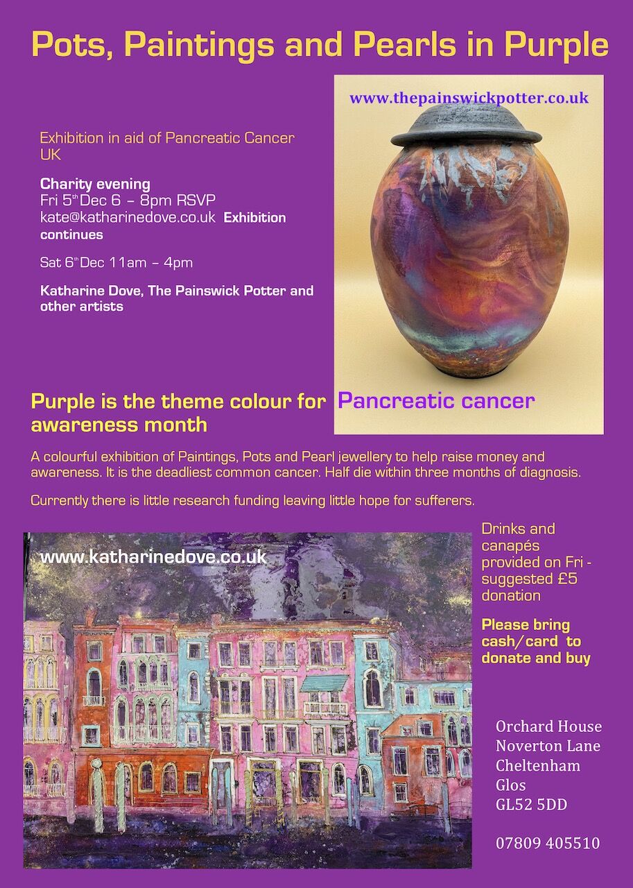Please join me at my new studio and home for an exhibition to raise awareness and funds for Pancreatic Cancer UK